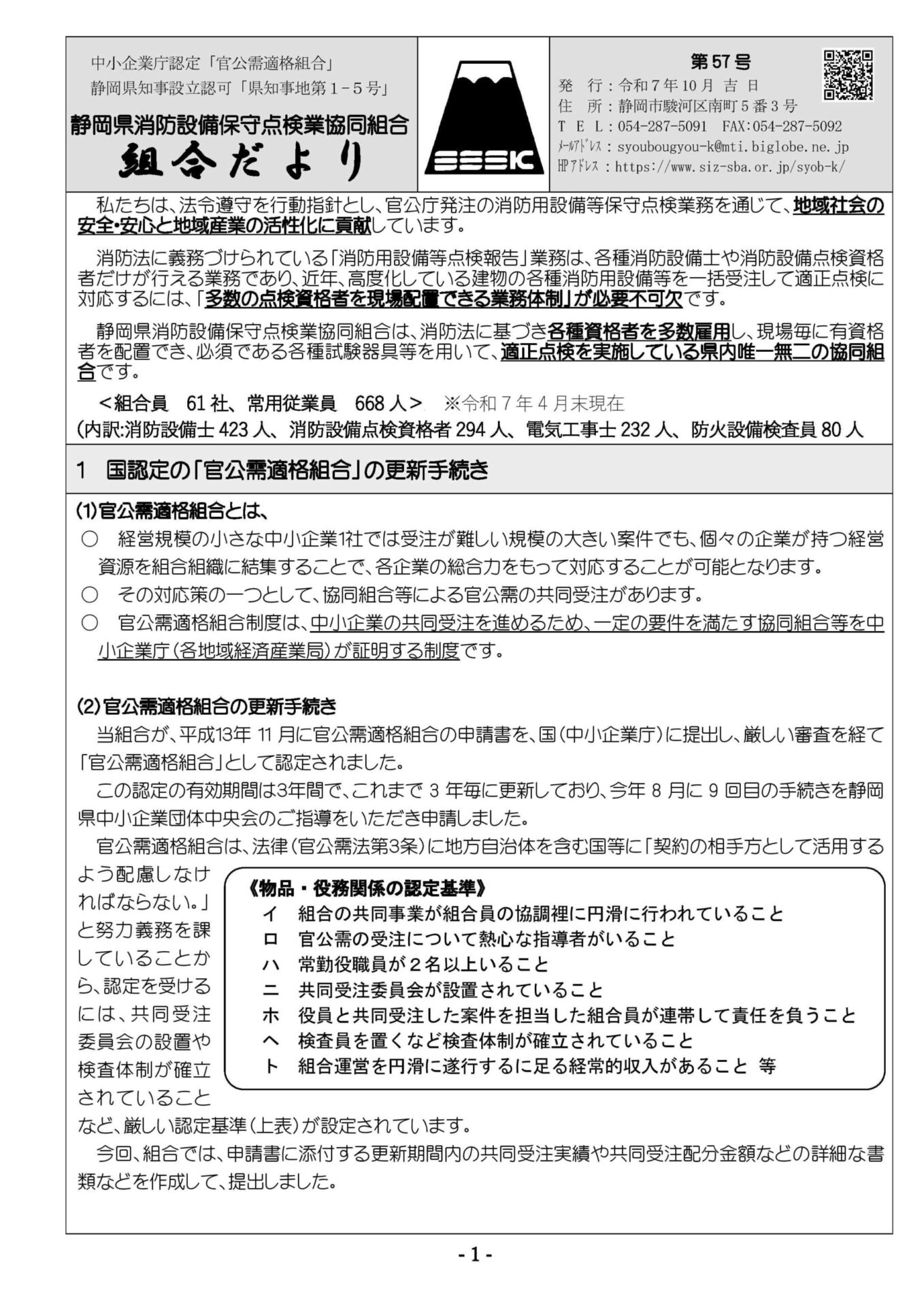 今回の特集は、「官公需適格組合」についてです。今年度は3年毎の更新時期でありますので、その内容と