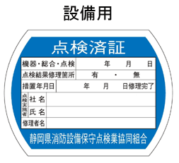 ●一定の要件を満たしている点検実務者に静岡県消防設備保守点検業協同組合がラベルを交付します。