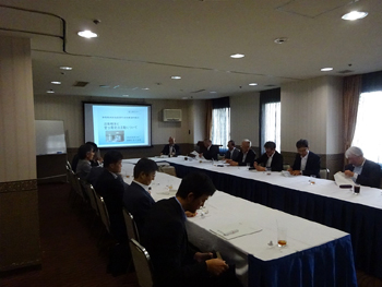 ・講演では、消防用設備等保守点検業務の特性、組合設立の理由、現在の取組(官公需受注活動)、業界確立に向けた取組等の実際を、パーワーポイント資料画面に沿ってお話しました。聴講者は、協議会会員及び中央会職員の計23名で、全員が組合代表者又は専務など役員・幹部職員であり、情報交換では人材の確保難、官公庁との接し方などに話題が集中し、やはり“所(ところ)変われど課題は同じ”ということをお互いに再認識しました。