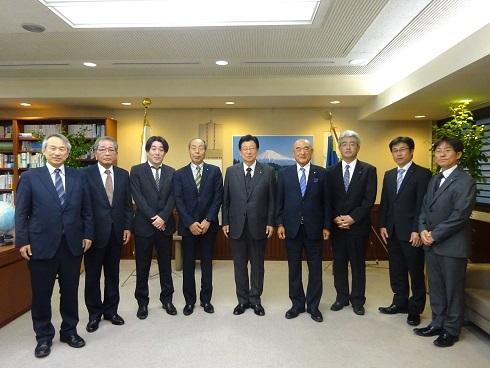 ・ 静岡・清水方面の挨拶回りでは、朝一番でご挨拶をさせていただいた川勝静岡県知事から、温かい励ましのお言葉をいただき、組合役員一同、県知事が認可し国から官公需適格組合の認定を受けた組合として、引き続き火災予防や地域経済等に貢献していく想いを新たにしたところです。