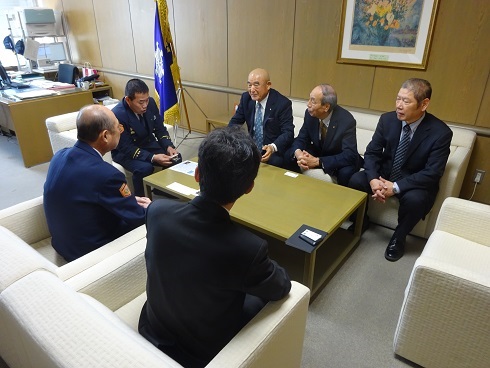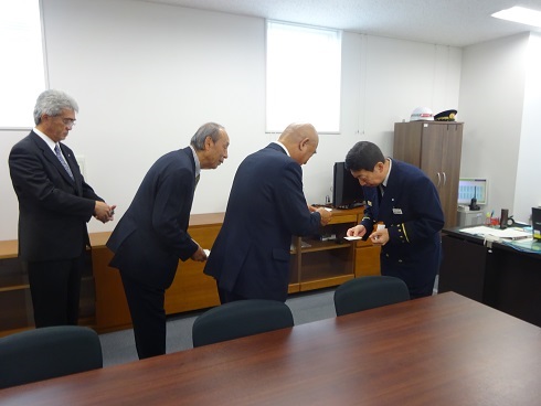 ・ 令和2年1月、静岡県消防設備保守点検業協同組合(以下「組合」)役員は、共同受注した官公署の担当部署や、組合活動の関係機関等へ新年の挨拶に伺いました(下写真)。