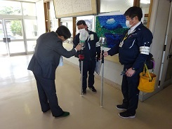 寒い中、検査員をはじめ現場点検の皆さんお疲れ様です。現場検査に先立って、学校の教頭先生等にご挨拶をしますが、「一生懸命やってくれています」と仰っていただけます。 |