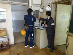 ・ このように検査員が現場に出向き、資格者証や有効期間の確認、点検実施機器の適正確認等を行う7日間(1月28日、2月5日・14日・17日・19日・20日・27日)の検査では、組合事務局・共同受注検査員(6名)・幹事会社・点検組合員など計30名余が、約2か月を掛け検査スケジュールを調整し決めています。これだけの検査体制と検査の実施は、全国でも当組合だけだと驚かれたことがあります。