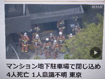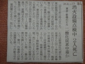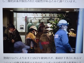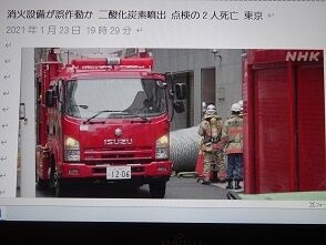 ・ 令和3年4月15日(木)夕方、「東京都新宿区において、二酸化炭素を消火剤とする不活性ガス消火設備(=二酸化炭素消火設備」)から何らかの理由で二酸化炭素が放出され、死者4名、負傷者2名を出す事故が発生しました。