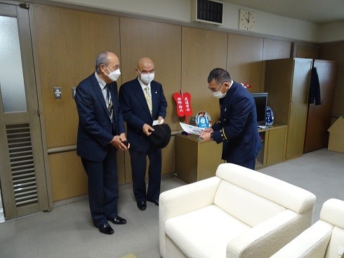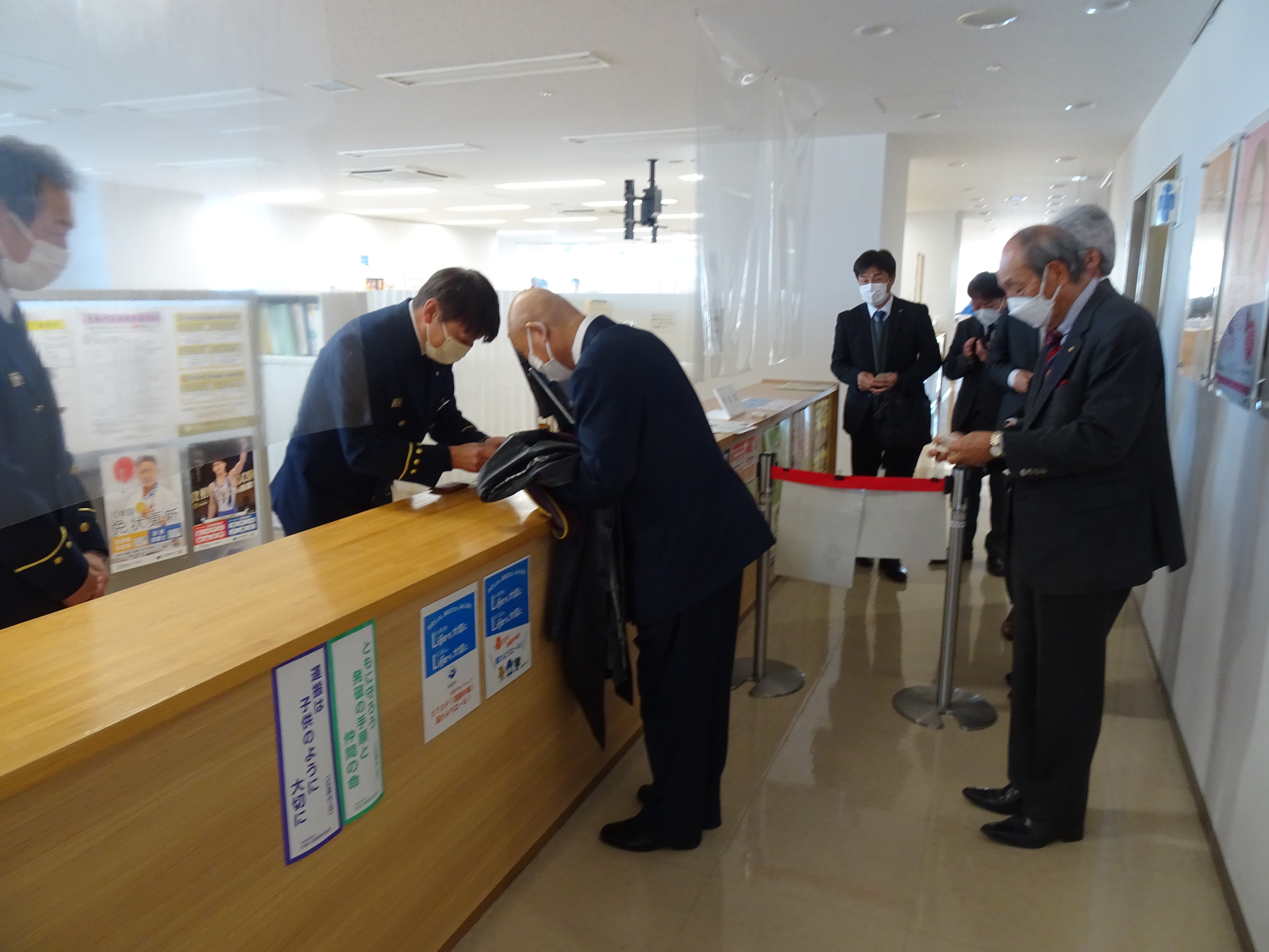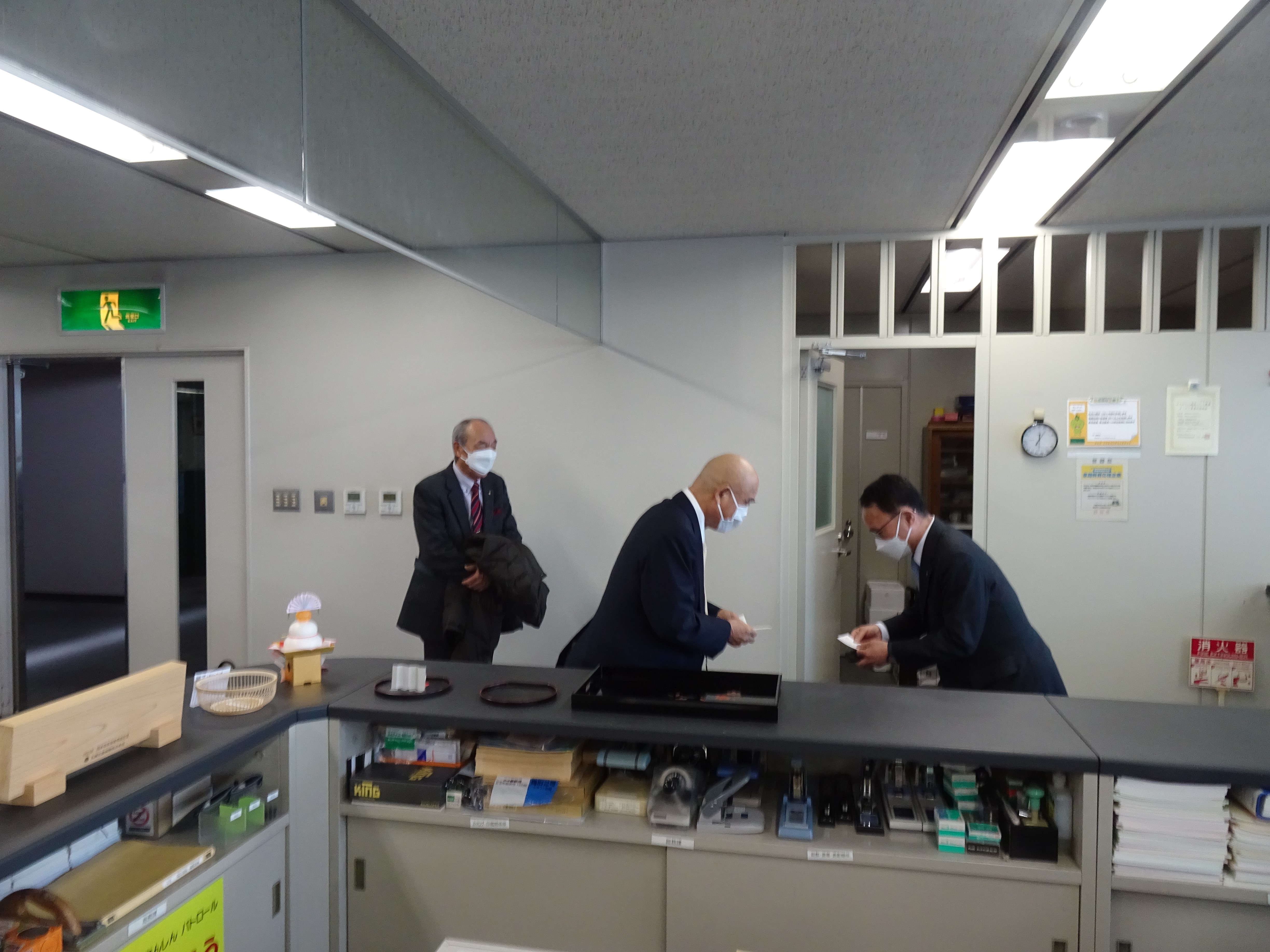 ・令和5年1月16日(月)、浜松方面の新年挨拶回りを行う西川理事長・堀部副理事長・組合関係者は、浜松市関係部署や浜松市消防局、県立高校グループ発注担当高校事務局へ組合広報誌「組合だより新年号」を持参して、法令遵守による適正な保守点検の徹底をお伝えし新年のご挨拶を申し上げました。