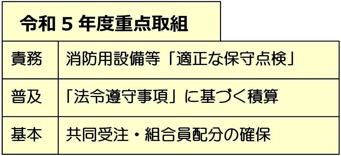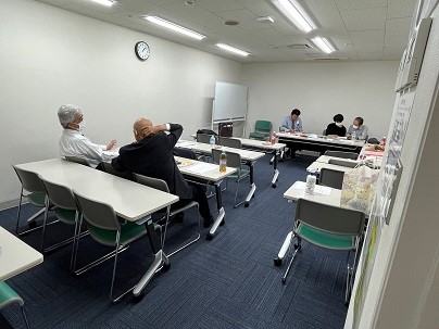 ・令和5年4月12日(火)午後、組合事務所(写真)の会議スペースで令和5年度第1回理事会が全理事出席のもと開催されました。議題は、本決算報告、総会開催案、総会資料、消防用設備等保守点検業務(防火設備含む)積算基準等です。令和5年度共同受注状況(中間)や業法についても報告がありました。理事会では、夕方まで「保守点検の推進」、「法令遵守事項に基づく積算の仕組」等を中心に、組合の責務や組合活動の発展の見地から真剣な議論、審議が続きました。(了)